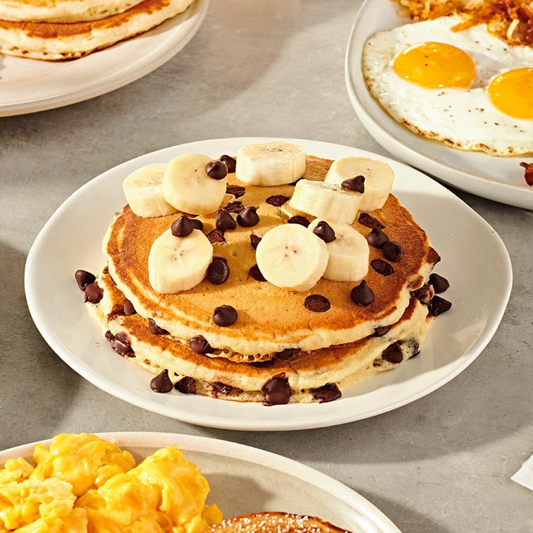 Chocolate chips cooked inside buttermilk silver dollar pancakes. Pair it with any side you want--whatever, whenever.